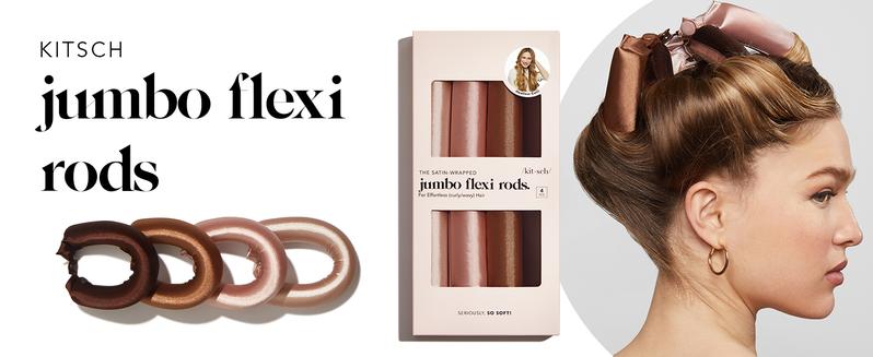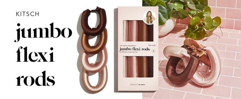 Kitsch Satin Heatless Curling Rod - Jumbo Flexi Rod, Heatless Hair Curler for Overnight, Soft Hair Curlers, Heatless Curlers for Women, 4Pcs, Rosewood